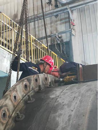 檢修期間,技術(shù)人員全程現(xiàn)場(chǎng)駐點(diǎn)指導(dǎo)與監(jiān)督。從舊端蓋的拆卸、接觸面的精細(xì)打磨處理,到新端蓋的精準(zhǔn)起吊定位以及最終的密封性能測(cè)試,每一道工序均嚴(yán)格遵循既定工藝標(biāo)準(zhǔn)和質(zhì)量要求。面對(duì)端蓋重量大、安裝空間受限等技術(shù)難題,檢修團(tuán)隊(duì)迎難而上,憑借專業(yè)的吊裝設(shè)備和精湛的操作技能,平穩(wěn)高效地完成了舊端蓋拆除與新端蓋安裝就位。經(jīng)過(guò)細(xì)致調(diào)整連接螺栓的緊固力矩,確保了端蓋與筒體之間達(dá)到卓越的密封效果。安全監(jiān)督人員全程旁站監(jiān)護(hù),對(duì)吊裝作業(yè)、動(dòng)火作業(yè)、臨時(shí)用電等關(guān)鍵環(huán)節(jié)實(shí)施嚴(yán)格安全管控,有力保障了整個(gè)施工過(guò)程的安全零事故。通過(guò)全體參檢人員的協(xié)同攻堅(jiān),端蓋更換任務(wù)較原計(jì)劃提前17小時(shí)圓滿完成。